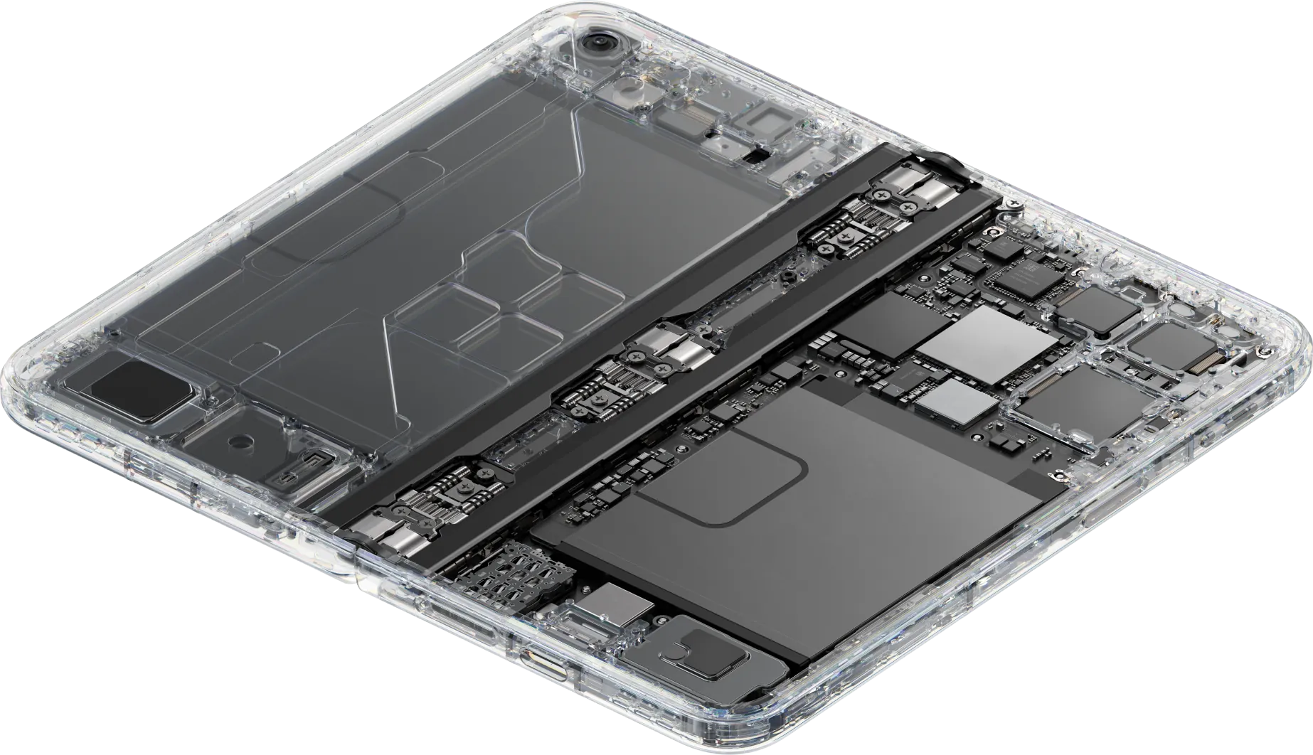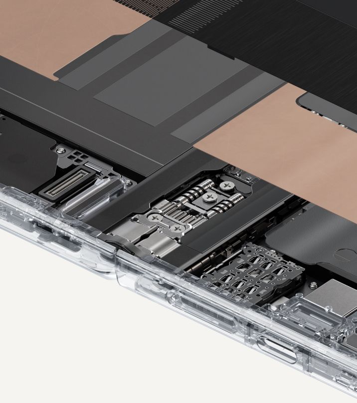 行业内首次选用碳纤维材料支撑折叠大屏3,重量大幅减轻;三层碳纤交错叠构,搭配全新网纹矩阵,确保弯折区久用依旧平整。