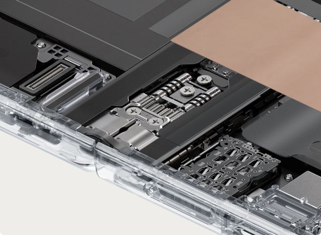 创新铰链形态升级,航天级材料确保小型铰链也有超高强度,满足悬停的同时减轻重量、节省空间,让超轻薄机身与大容量电池兼得。
