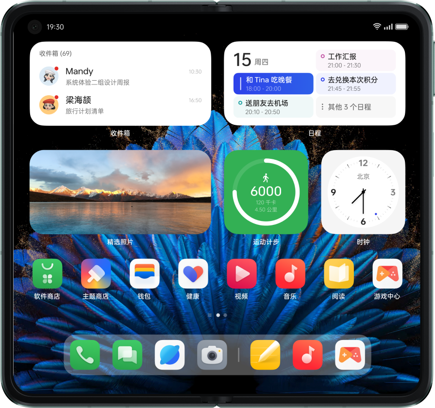 针对大屏优化桌面陈列,大屏可显示外屏双倍内容,拓宽显示面积,视野翻倍。