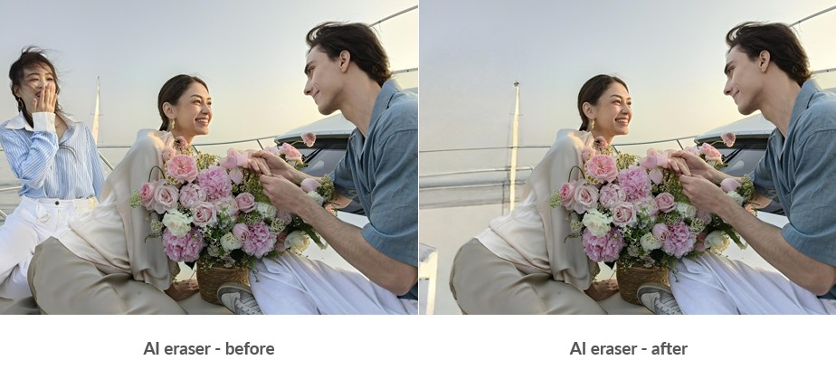 Les Reno12 et Reno12 Pro introduisent une suite de fonctionnalités d'IA générative révolutionnaires[1], pensées pour toutes les différentes habitudes d'utilisation quotidienne. Avec l'Effaceur IA récemment mis à jour, les gens peuvent facilement gommer les étrangers ou les objets distrayants des photos d'un simple toucher grâce à la capacité de la fonctionnalité à identifier les personnes et les objets indésirables.