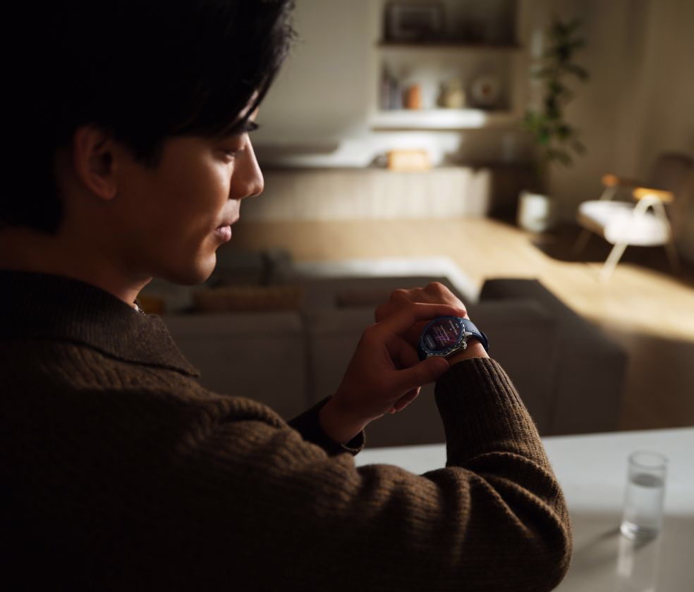 Informasi instan tentang kesehatan Anda semudah mengangkat pergelangan tangan dan mengetuk sekali. Akses tanda-tanda kritis termasuk Detak Jantung, SpO2, Pikiran dan Tubuh, Suhu Pergelangan Tangan, dan Tidur. Hanya dalam 60 detik, prosesnya selesai, memungkinkan evaluasi yang cepat dan mudah kapan pun, di mana pun.