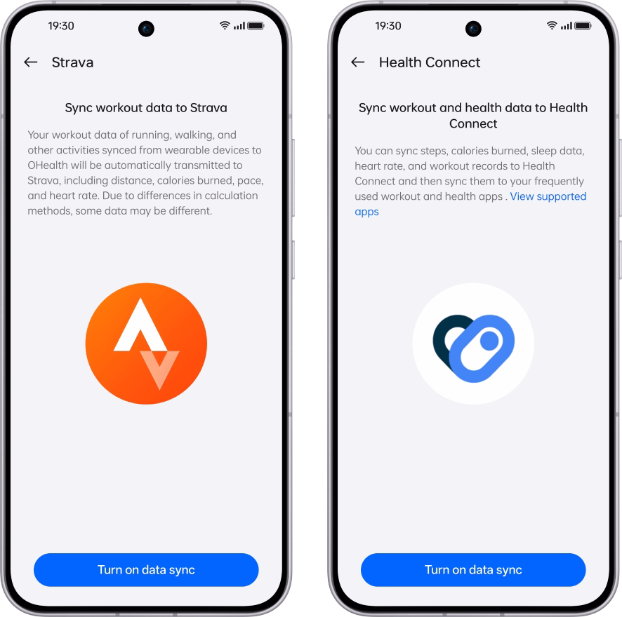 Sinkronkan lebih banyak data kesehatan dan kebugaran dengan Health Connect, lalu bagikan secara lancar dengan aplikasi lain yang terintegrasi dengan Health Connect, seperti Google Fit13.Sinkronisasi data olahraga ke Strava juga didukung.