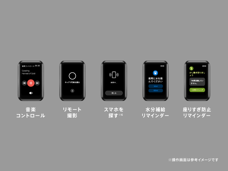※2 本製品は医療機器ではありません。病気などの診断、治療、予防の目的に対してのご使用はできません。心拍数モニタリングや睡眠中の血中酸素レベル追跡、レム睡眠の測定はデフォルトではオフになっております。