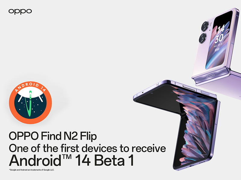 • OPPO's latest foldable phone, the Find N2 Flip, will receive the new Google Android 14 Beta 1 update