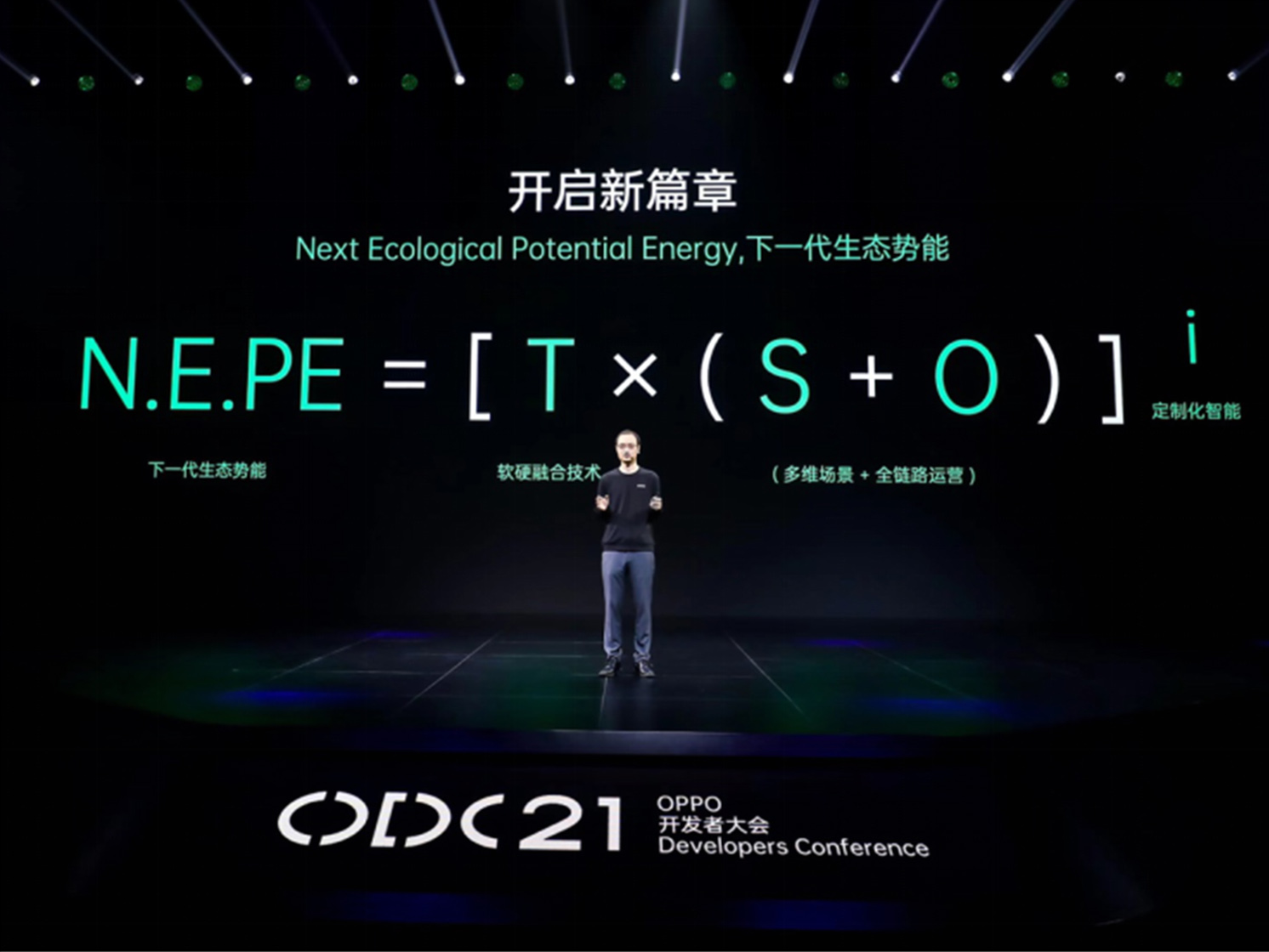 在 ODC21 上,OPPO 研究院院长刘畅提出了下一代生态势能公式 N.E.PE=[T ( S + O )] i(Next Ecological Potential Energy,N.E.PE),这一公式定义了开发者与平台的角色与关系,并展现了双方融合共创所能带来的巨大势能。