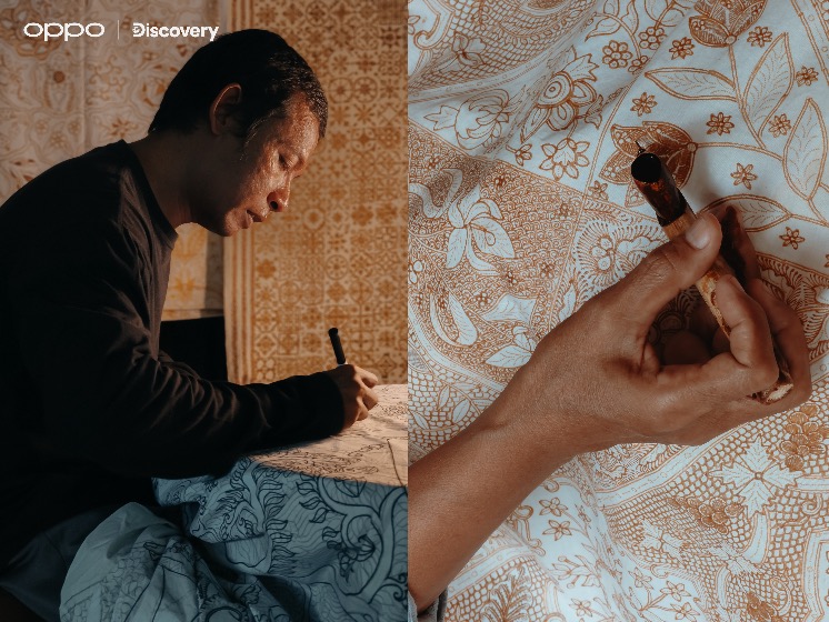 一名印尼蜡染艺术家正在绘画(由OPPO Reno12 Pro拍摄)
