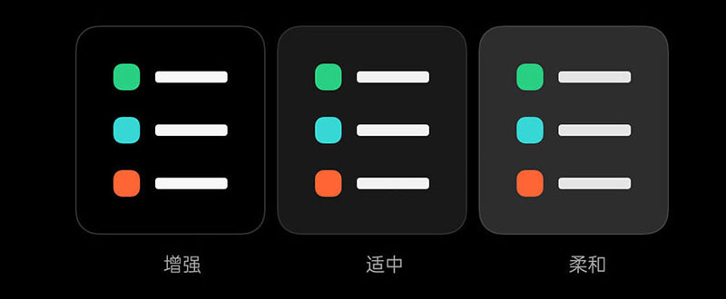 暗色模式提供增强、适中、柔和三种风格,可自由选择。无论白天还是黑夜,任何时刻阅读屏幕都能舒适到底。