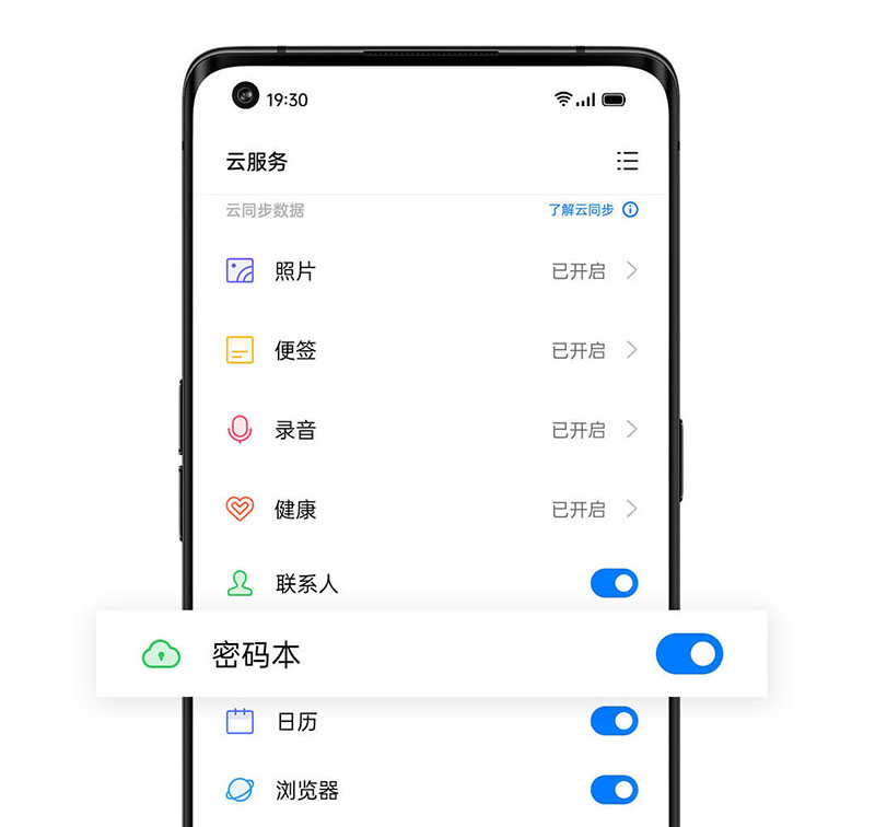 请先在“设置 > 登录账号” 登录HeyTap账号,然后进入“设置 > 云服务 > 密码本”开启该功能。