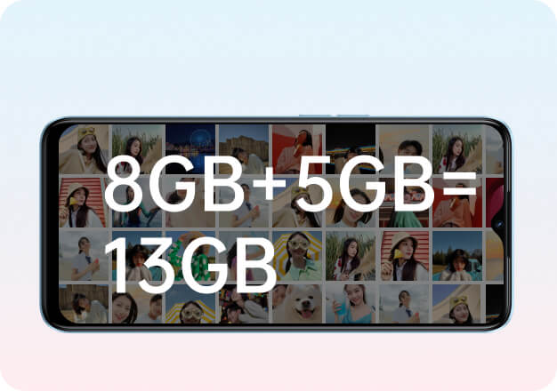 8GB 超大运存,多应用同时运行不卡顿。还能一键开启 RAM+ 运存拓展技术,享受最高等效 13GB 的旗舰级运存体验。