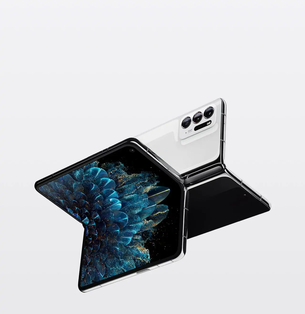 合起无缝,展开像镜面一样。4 年 6 代自主研发8,OPPO 专项研发团队打造的精工拟椎式铰链,在领先的水滴型方案上更进一步,让折叠屏幕体验无忧。