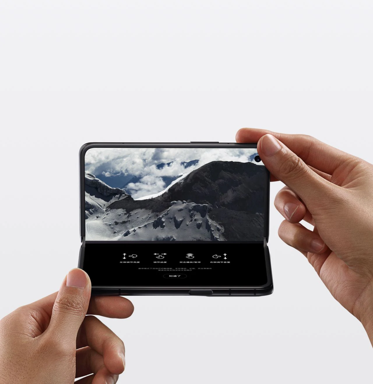 一手掌握指该产品在内部调研测试中,从交互规范的比例数据与用户握持舒适的比例数据中取得平衡,以此作为该产品打开、合上宽度尺寸的设计原点。