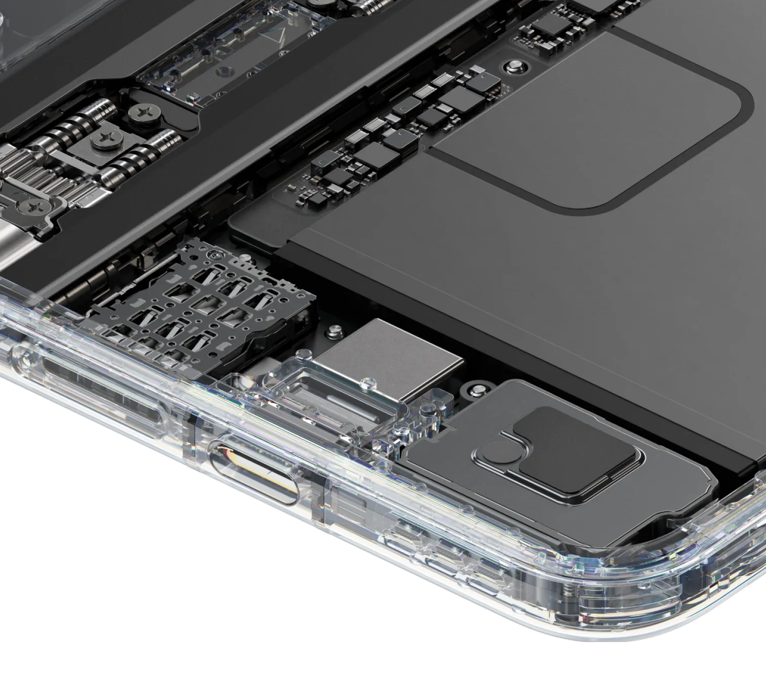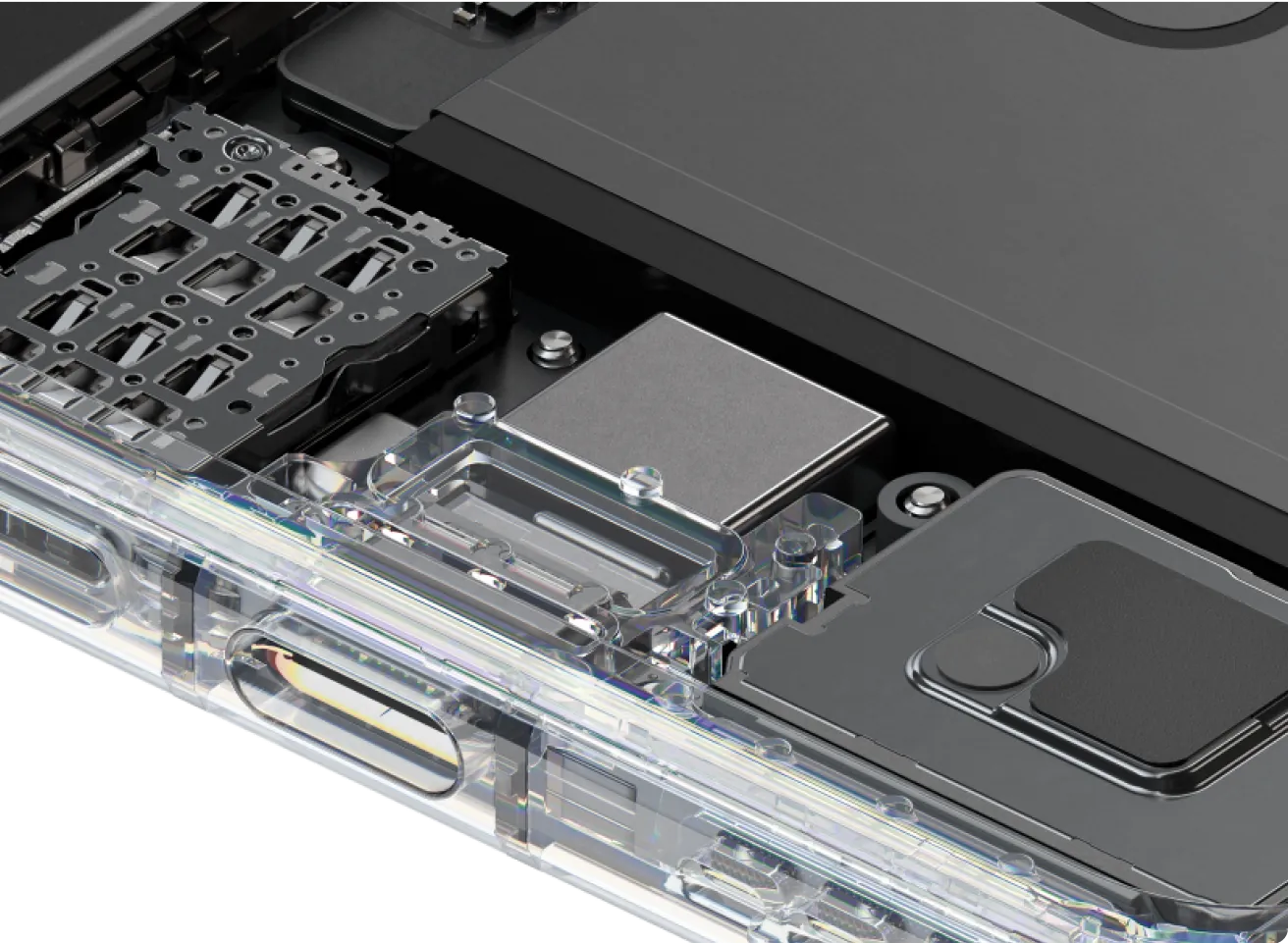 创新铰链形态升级,航天级材料确保小型铰链也有超高强度,满足悬停的同时减轻重量、节省空间,让超轻薄机身与大容量电池兼得。