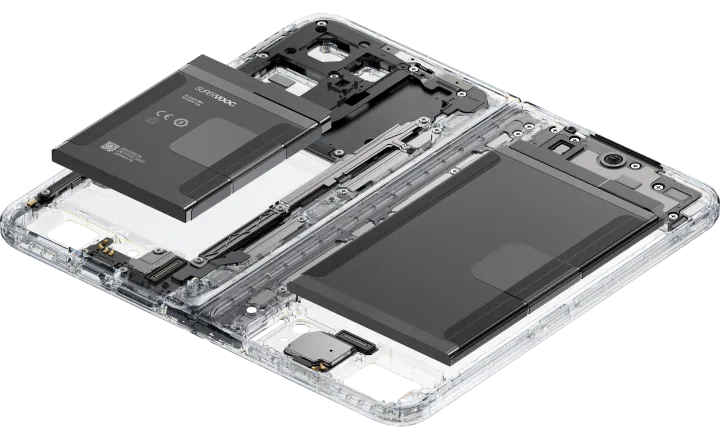 行业内首次选用碳纤维材料支撑折叠大屏3,重量大幅减轻;三层碳纤交错叠构,搭配全新网纹矩阵,确保弯折区久用依旧平整。
