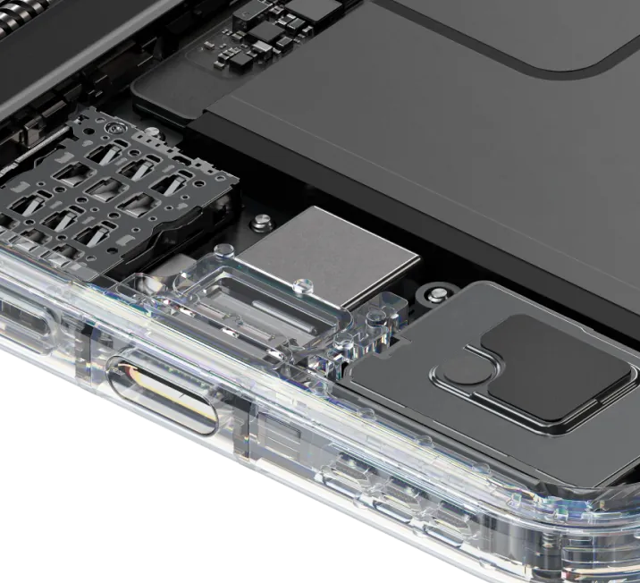 行业首次指首次在采用水滴铰链的折叠屏手机中,使用碳纤维材料作为折叠屏的支撑层。