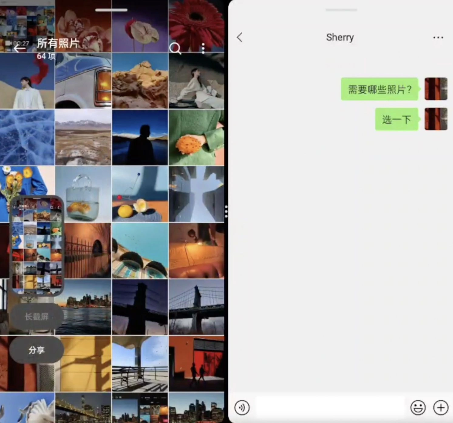 一步完成分屏截图,拖动即可分享,操作便捷。