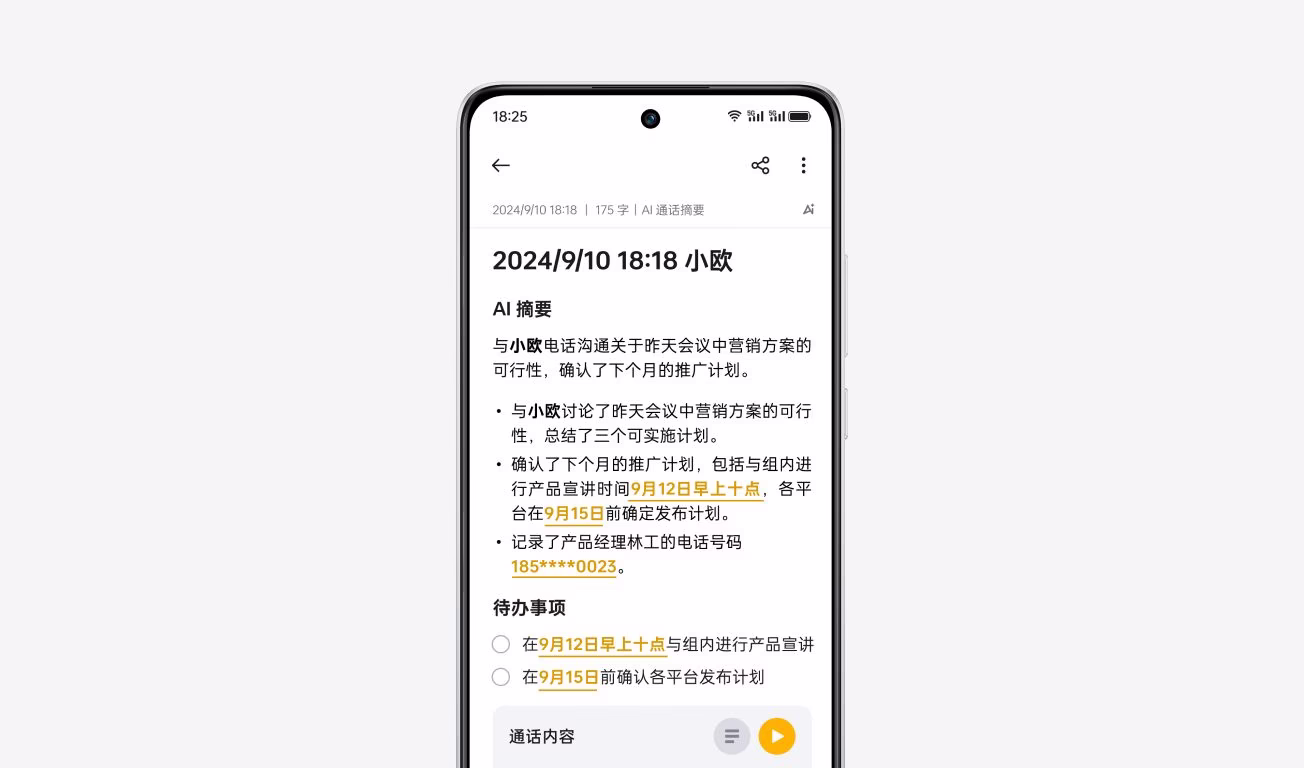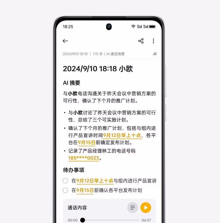 通话摘要,帮你记录和整理通话内容。更多 AI 功能,打开小布助手就能体验。