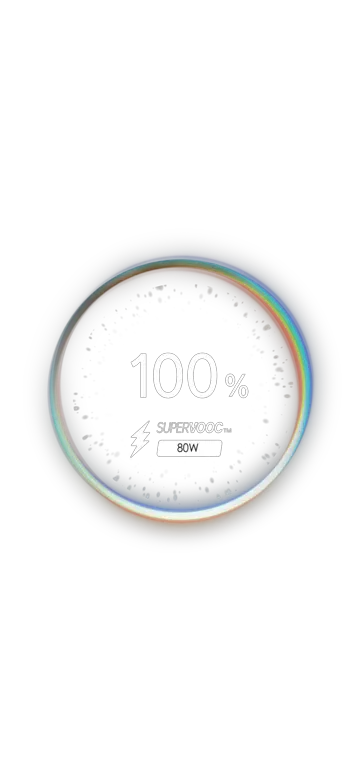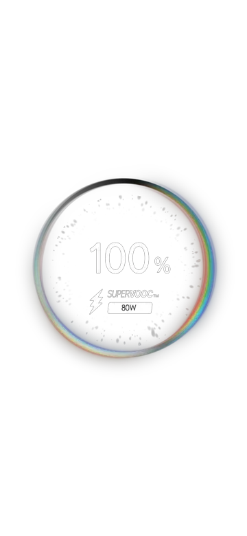 Get hours of power in just minutes with 80W SUPERVOOCTM Flash Charge — fast, safe, and built to keep up with your pace.