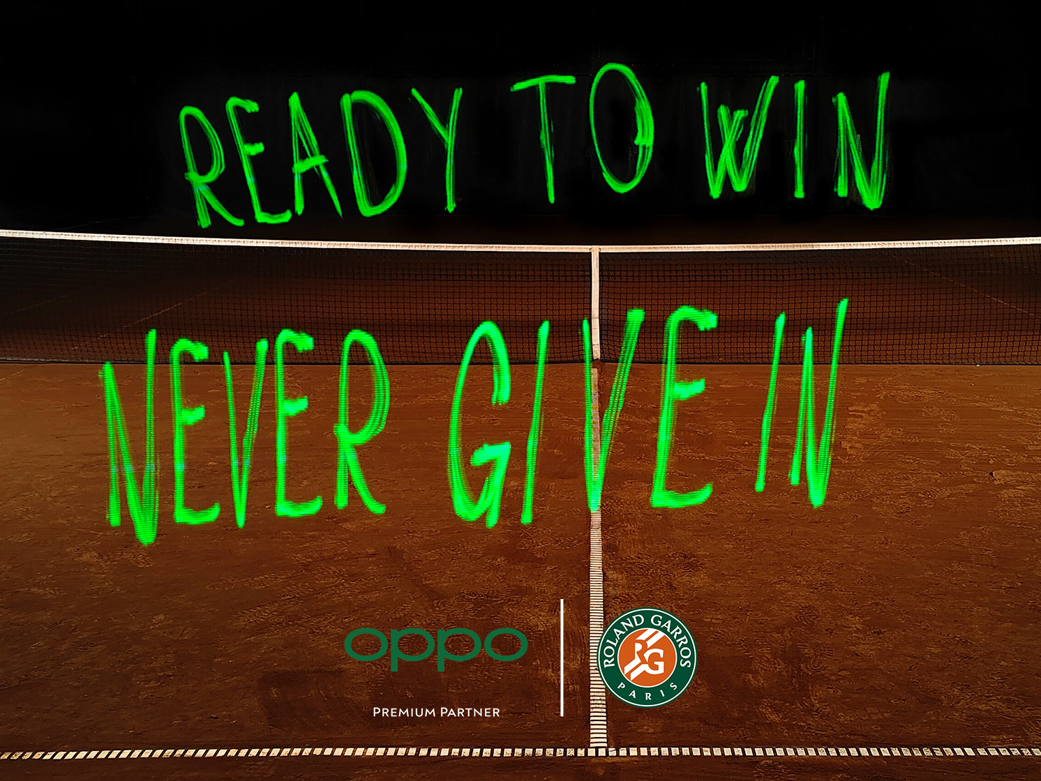 OPPO’s ‘Inspirational Light’ campaign, devised from the new brand proposition “Inspiration Ahead”, brings tennis fans globally to champion some of the world’s standout athletes. Inspiring messages of support from the avid tennis community were used to create striking yet beautiful light painting imagery showcased on the red clay court on each night of the tournament.
