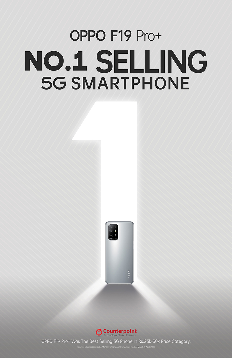 National, June 10th , 2021: Consolidating its 5G legacy, OPPO India’s F19 Pro+ 5G was recently declared as the No.1 selling 5G smartphone in the 25k-30k category for two consecutive months in March and April. Markets including Ahmedabad, Bangalore, and Mumbai have been the top-performing states recording the highest sales volume of the product.