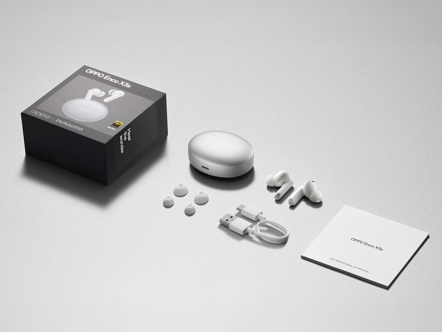 Con un peso di 4.7g per auricolare, OPPO Enco X3s combina un comfort ultra sottile con resistenza a polvere ed acqua IP555, che li rende perfetti per essere indossati tutto il giorno in qualunque circostanza. In aggiunta allo sleek nebula silver delle cuffie, anche la custodia di ricarica è caratterizzata da logo Dynaudio a riprova delle eccezionali esperienze che garantisce, con fino a 11 ore di riproduzione musicale (AAC, ANC off) in una singola ricarica e 45 ore totali con la custodia6.