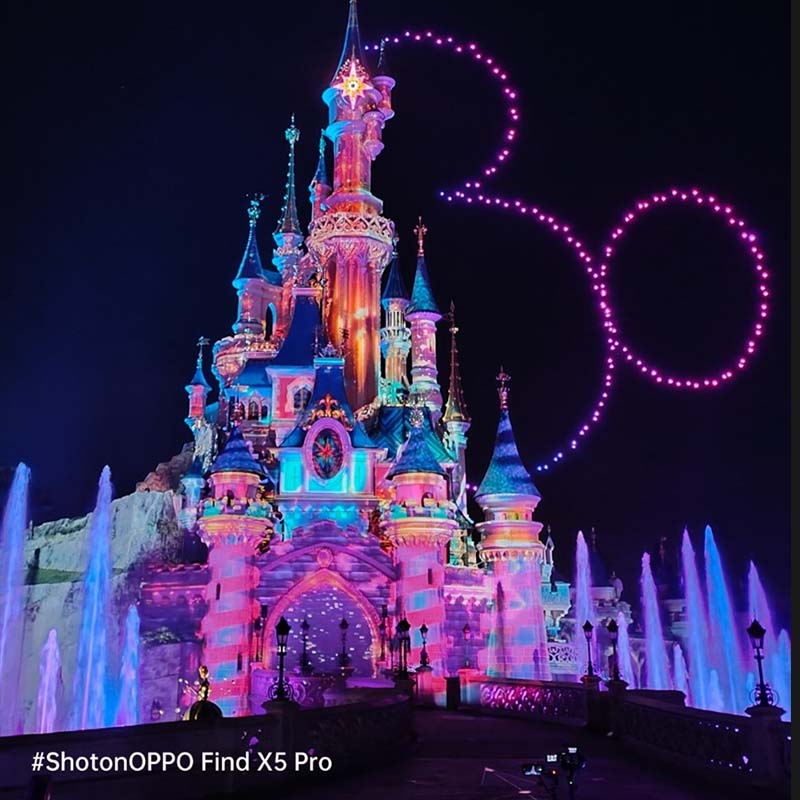 OPPO Find X5 Pro ha permesso agli ospiti di Disneyland Paris di catturare i loro ricordi migliori, evitando immagini sfocate o sgranate durante le riprese dell'iconico spettacolo di luci. Per congelare i fotogrammi in tutto il loro splendore è necessario uno smartphone avanzato, per questo motivo OPPO ha messo a disposizione Find X5 Pro, che ha permesso di immortalare lo spettacolo pirotecnico appositamente pensato per l’anniversario del parco in tutto il suo splendore, mentre le colonne sonore Disney invitavano gli spettatori a sognare più in grande, a sorridere di più e a ridere più forte.