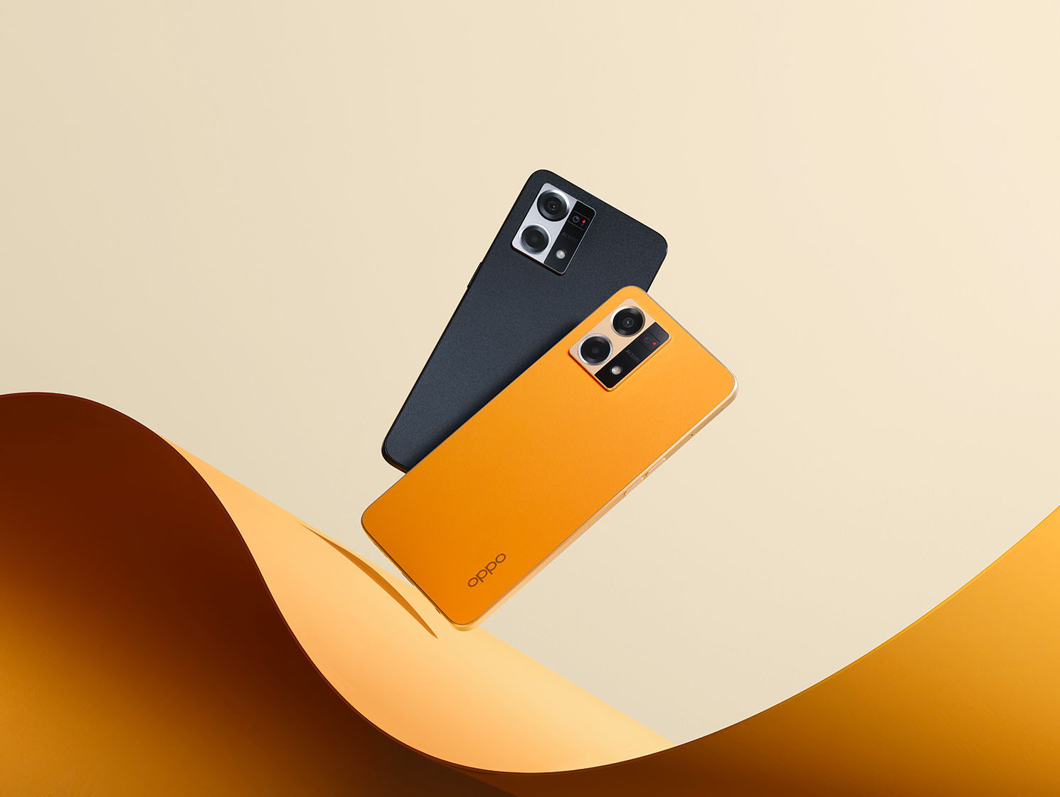 Reno7 mantiene le linee iconiche della serie Reno, introducendo però l’Ultra-Slim Retro Design e due nuove colorazioni Sunset Orange e Cosmic Black. Sunset Orange si presenta con un vibrante colore arancione e un tocco di pelle premium, grazie al primo design in fibra di pelle e vetroresina del settore. Un rivestimento, che riprende la texture del litchi, e un’incisione sagomata integrano perfettamente la cover posteriore del telefono con il mid-frame, dando vita a un design di qualità superiore. Cosmic Black si caratterizza invece per l'iconica finitura OPPO Glow, dando vita a un design ipnotizzante.