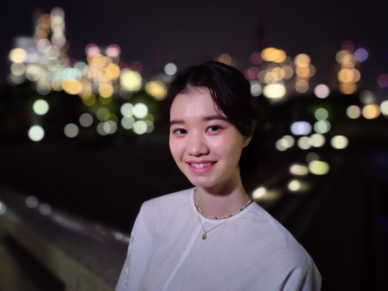 ネオンポートレート:夜景やイルミネーションなど、背景の街明かりを「玉ボケ」させ、被写体の表情を最適な明るさで際立たせるOPPO独自の機能です。