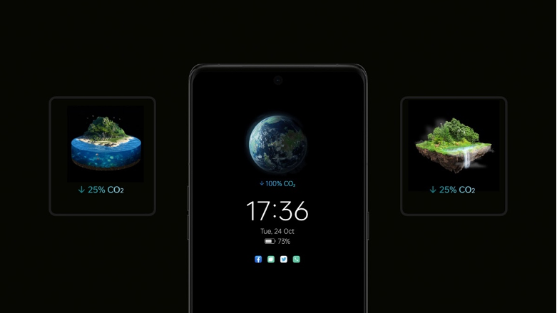さらにOPPOは、より多くのユーザーに低炭素化に向けた旅に参加してもらうために、世界中で月間6億人のアクティブユーザーを持つ最新のColorOS 14に「GO Green」常時表示ディスプレイを導入しました。画面上のアニメーションとカーボンフットプリント(温室効果ガス排出量)は、ユーザーが毎日歩いた歩数に応じて変化します。交通手段を利用する代わりに歩くことが、いかに二酸化炭素排出量の削減につながるかを直感的にわかりやすく表示しています。