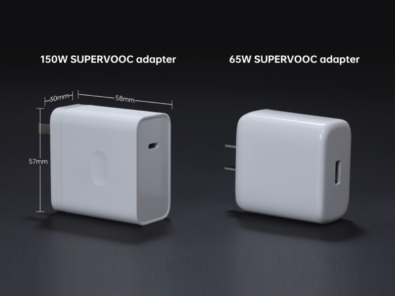 さらに、「150W SUPERVOOC with BHE」の アダプターは窒化ガリウム(GaN)を活用することで、前世代の「65W SUPERVOOC」の アダプター」とほぼ同じサイズ(58x57x30mm、重さ約172g)に小型化されています。
