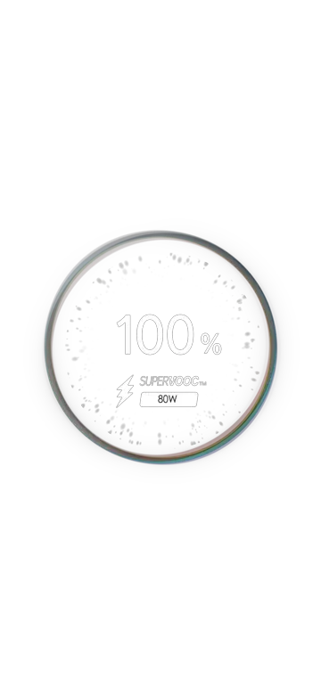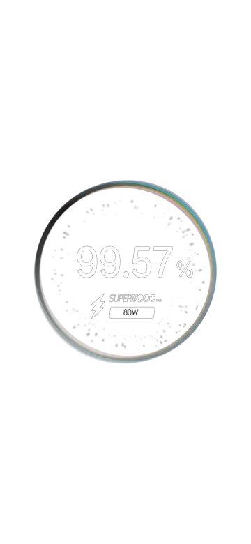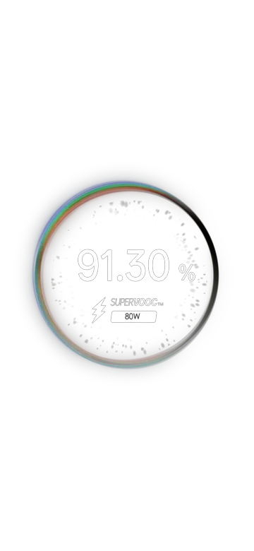 Get hours of power in just minutes with 80W SUPERVOOCTM Flash Charge — fast, safe, and built to keep up with your pace.