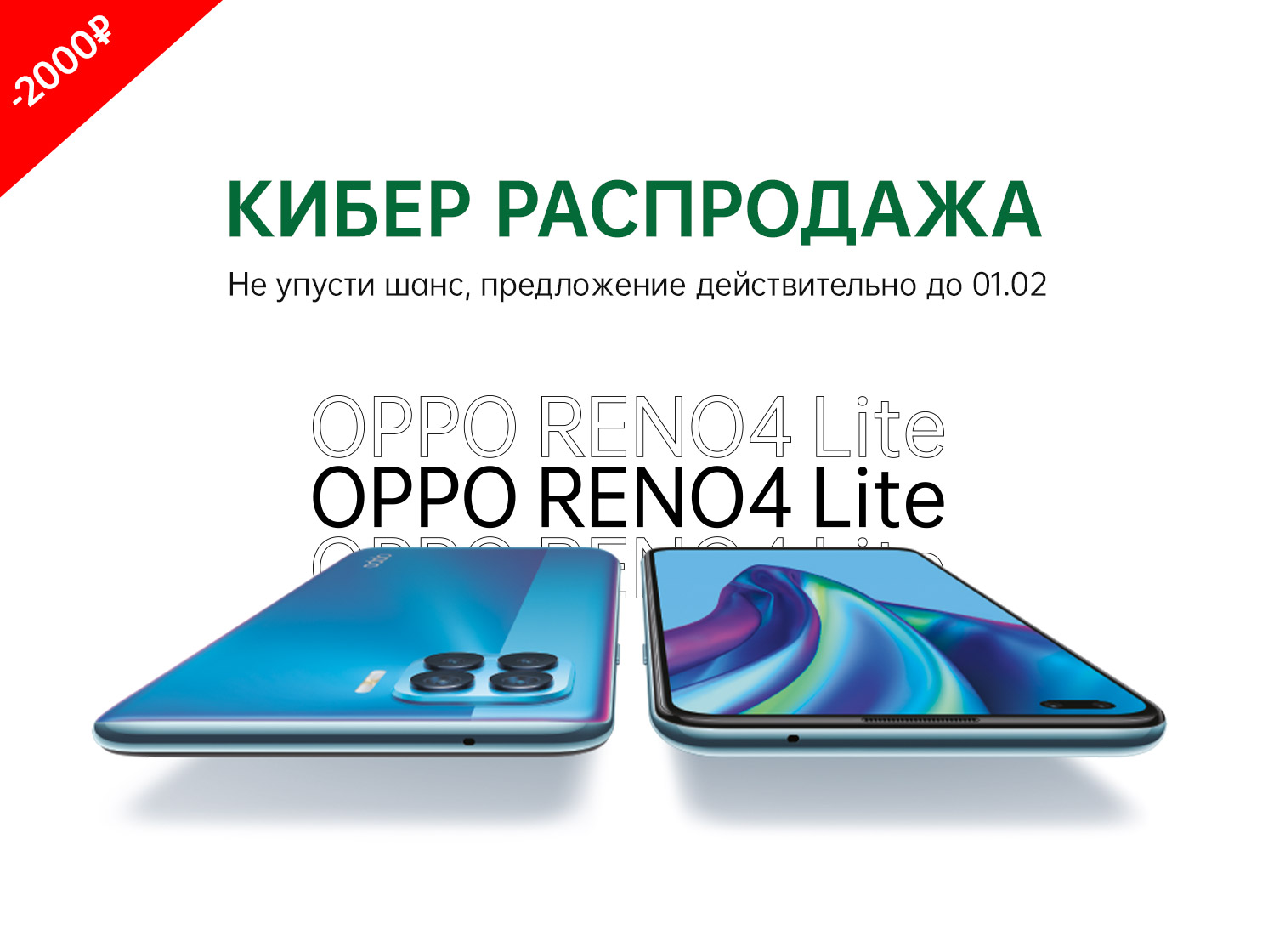 Москва, 26 января 2021 — Компания OPPO объявляет о старте акции «Кибер Распродажа», в рамках которой покупатели смогут приобрести стильный смартфон Reno4 Lite со скидкой.